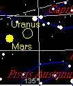 it accross the sky. In one night everything has shifted. Tonight [Sep 9] Mars is South and the Moon is chasing Mars? [Note: this is appropriate