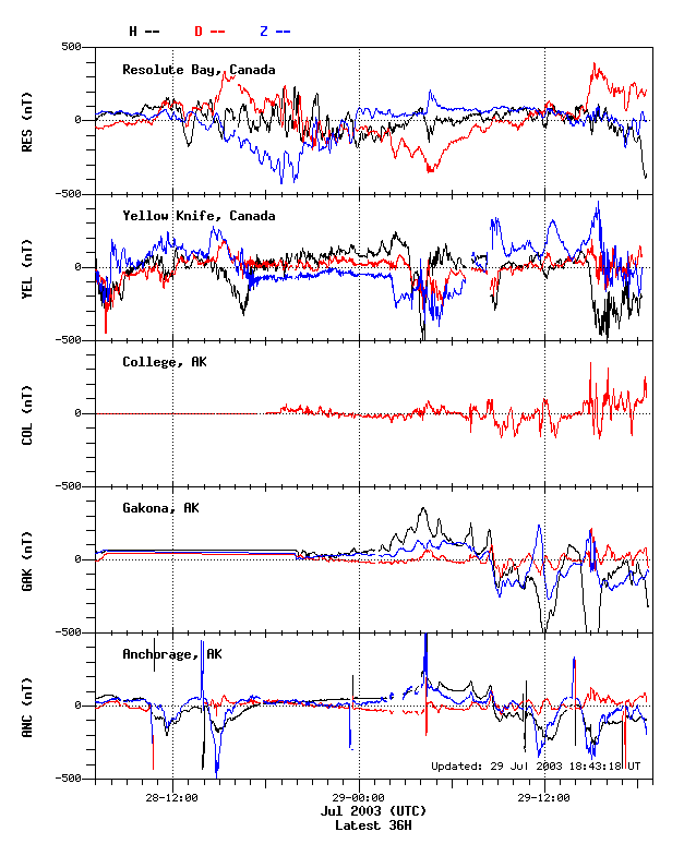 - With all the serious shaking going on, now HAARP has not shown the the three data points since before the morning of the 28th! And IRIS Seismo Map has not shown anything alledgely for at least 24 hours for the big red circles. All we have now is the European Seismo list which is already staggering this morning on July 29. A 7.0 in and near the very scarey Canary Islands, a high 6 in Portugal. ... Seems to be the pattern. Earth´s magnetic field goes bonkers, Earth starts quaking, sites go down or info dissapears. ... I suspect some funny business went on with the Euro site as well on the 28th. Activity dropped off too fast once again. This only serves to confirm some kind of a cover up. What are they hiding? ... HAARP magnatometer going off the chart now.