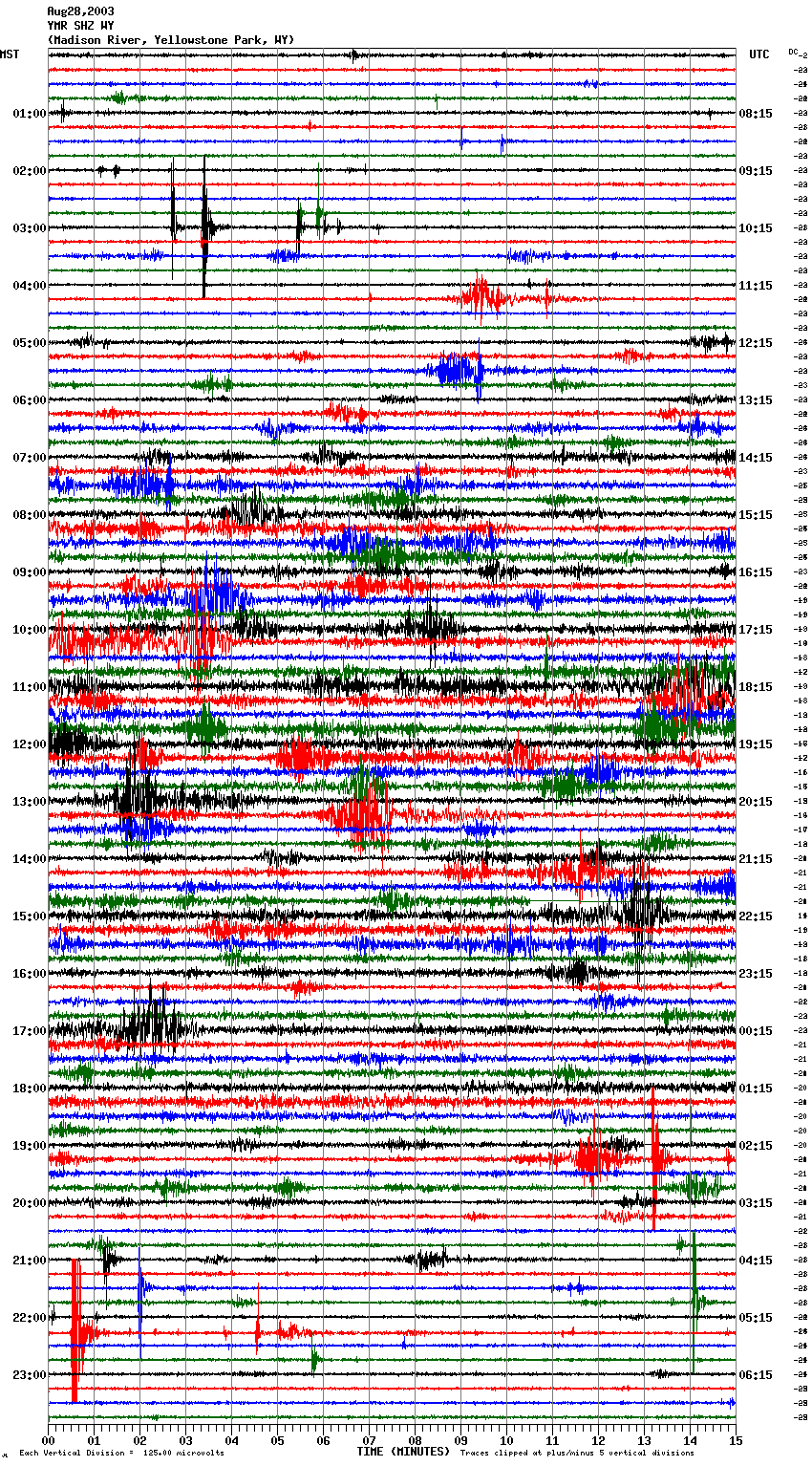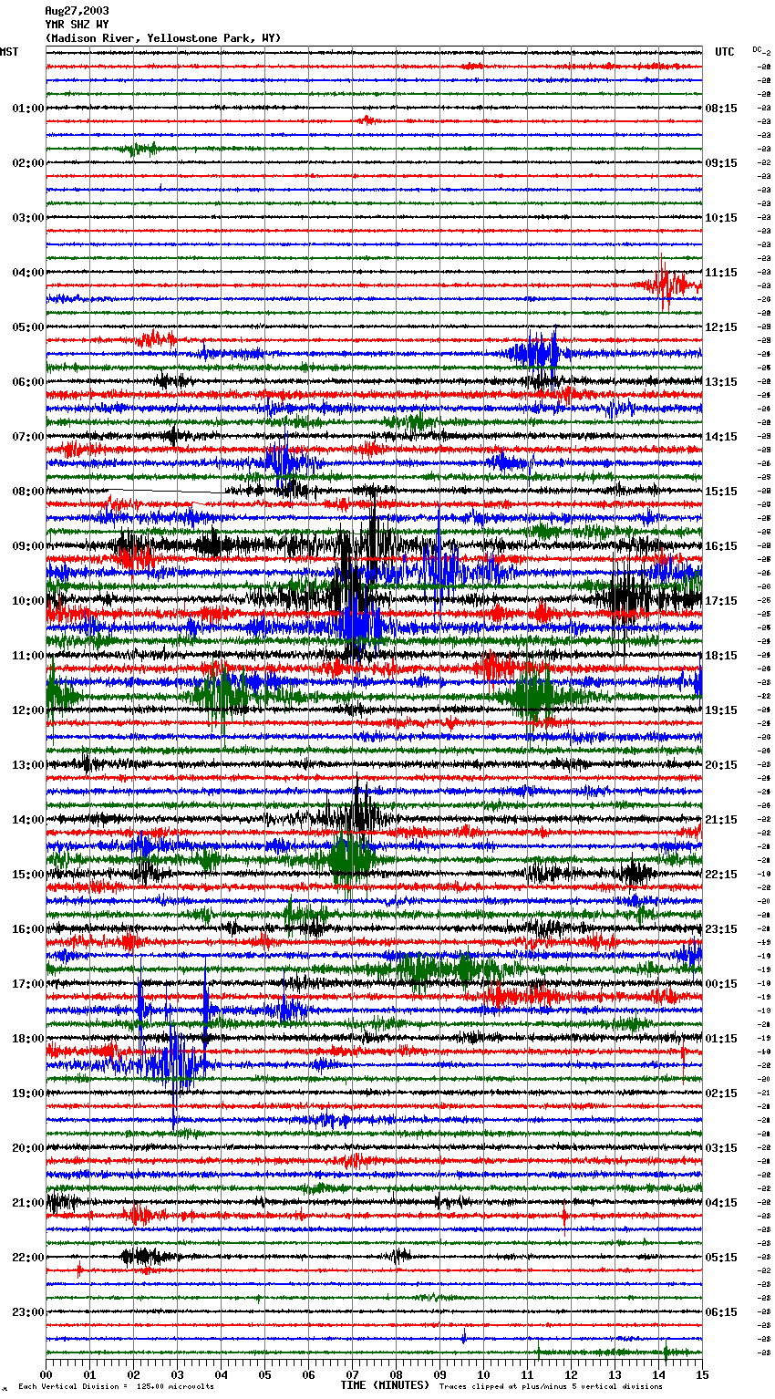 - In addition, yesterday [Aug 29] the Madison River seismograph was pretty tame compared to what it has been. This activity is apparent at Mammoth (YMV, YMC, YMV, YNR, and sometimes LKWY).