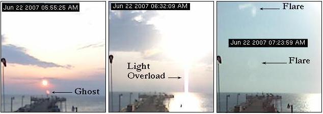 To add to the confusion, flares and ghosts appear. This particular N Carolina webcam has both. Characteristic