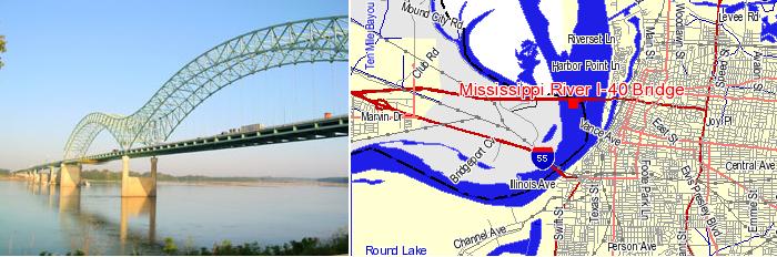 The I-40 Bridge over the Mississippi River is a vital transportation, commercial and defense link in the Memphis area. It is situated at the southeastern edge of the New Madrid Seismic Zone, where 3 of the largest earthquakes in the Central United States occurred in the 1800's. It was retrofitted with Friction PendulumTM isolation bearings designed to withstand a magnitude 7 earthquake occurring on the New Madrid fault. Use of Friction PendulumTM bearings allows the 40 year old bridge to remain operational after an extreme earthquake event. With a vertical load carrying capacity of over 20 million pounds, the Friction PendulumTM bearing for the I-40 Bridge is the world's largest load carrying seismic isolation bearing. These high load capacity bearings were dynamically tested at the University of California, San Diego, where they underwent simulated earthquake tests with velocities of 54 inches per second.