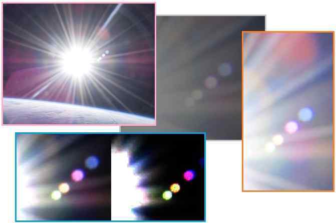 ZetaTalk Insight 3/15/2014: This is a genuine capture of what is called a String of Pearls presentation of the Moon Swirls in the tail of Planet X, and is a deliberate release by NASA in the run-up to the announcement. This lineup happens only rarely, when several Moon Swirl tubes are aligned side-by-side in parallel due to the whip of the tail, and when the angle of view from the camera or eye is such that the end points are facing the camera. Sunlight funnels down the length of the Moon Swirl, bouncing from the sides so that the light is focused out the end, like a flashlight. Here the Moon Swirl orbs appear with different color hues, like a rainbow, due to the angle of the exiting light focus, as red light bends more readily than blue, etc.