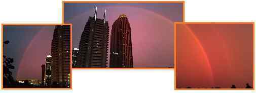 These were filmed in Atlanta on June 5th, 2014. Two independent videos of the same phenomenon, and they don't look like rainbows (there are many other videos confirming the same). https://www.youtube.com/watch?v=NOhq6vYWPxQ Would the Zetas like to comment? [and from another] https://www.youtube.com/watch?v=wsf3XWaOL_Q Published on Jun 5, 2014 After an evening thunderstorm rolled through Atlanta on June 5, 2014, the sky turned brilliant red and a double rainbow appeared. I captured the event along with some amazing lightning