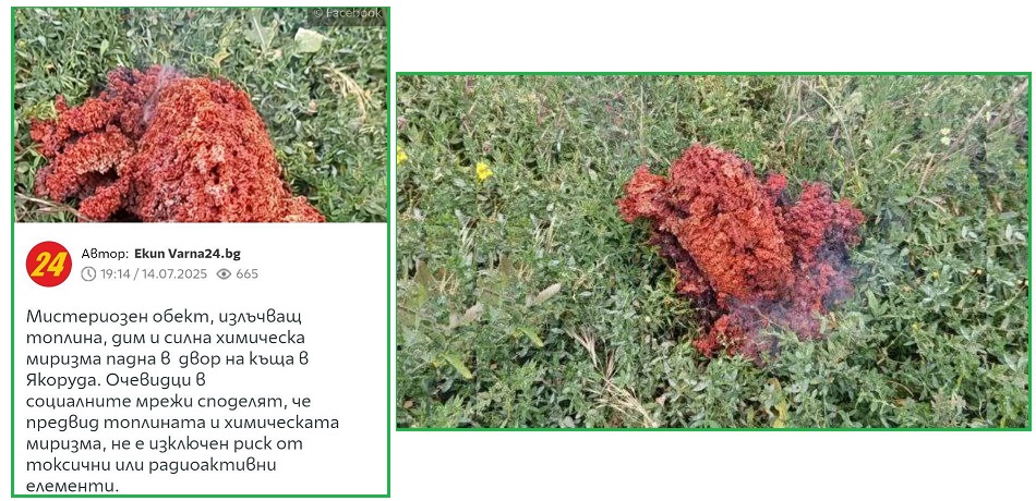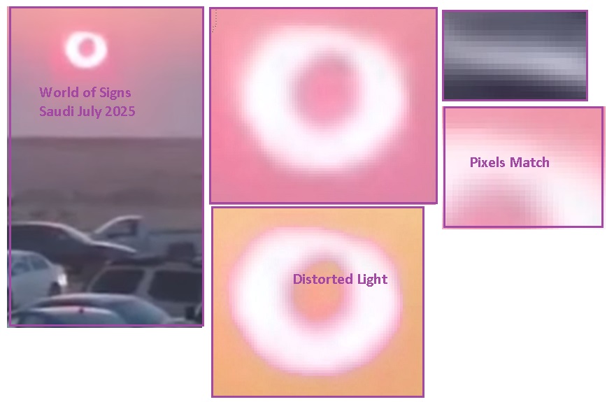 Хвост Нибиру приближается к Земле и, как было недавно замечено, несёт с собой крупные обломки. Это почти всегда нефтяные сгустки, покрытые или смешанные с красной железооксидной пылью, и вблизи Земли он может казаться пугающе большим. На этой фотографии из Аравии большое пятно затмевает Солнце, а его масса достаточно велика, чтобы искривлять световые лучи и нарушать симметрию Солнца. Как показал недавний эпизод в Болгарии, упавшие нефтяные сгустки быстро испаряются, а как показал недавний эпизод в Великобритании, даже если приближающиеся сгустки кажутся твёрдыми, они исчезают.