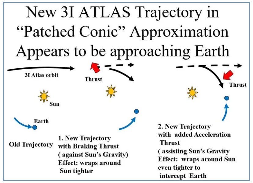 Сообщается, что 3I/ATLAS изменил свою траекторию непосредственно перед тем, как пройти за Солнцем. [и из другого] Межзвёздный объект 3I ATLAS, возможно, изменил курс. Новая траектория предполагает сближение с Землёй 27 октября 2025 г. https://www.reddit.com/r/space/comments/1ohchkl/interstellar_object_3i_atlas_may_have_changed/ Астрофизик Джон Бранденбург предполагает, что выбросы газа из межзвёздного объекта 3I ATLAS могут изменять его орбиту таким образом, что он приближается к Земле.