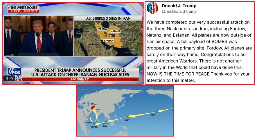 21 июня в 2:30 утра по местному времени в Иране, США нанесли удар по трём ядерным объектам в Иране, включая «Фродау». США отправляли бомбардировщики B2-2000 через Тихий океан в качестве приманки, в то время как бомбардировщики B2 с полезной нагрузкой направлялись на восток.