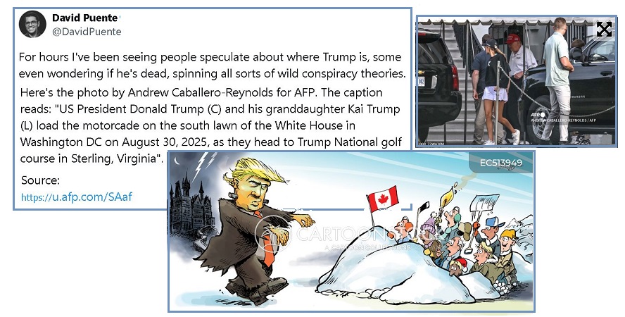 Президент Дональд Трамп был сфотографирован в субботу во время игры в гольф после того, как в социальных сетях распространились беспочвенные слухи о его смерти. В некоторых сообщениях говорилось, что его не видели на публике в течение нескольких дней. В пятницу в социальных сетях начали распространяться ложные слухи о смерти Трампа после того, как появились сообщения о том, что его не видели на публике в течение двух дней. По состоянию на 9:15 утра по восточному времени в субботу хэштег #whereistrump был шестой по популярности темой в X в США. По состоянию на 7:48 утра по восточному времени в субботу, согласно аналитике платформы, было опубликовано около 158 000 постов с фразой «ТРАМП МЁРТВ» и 42 000 постов с фразой «ТРАМП УМЕР». В Tiktok пользователь w0odada опубликовал видео с подписью «На улицах говорят, что Дональд Трамп мёртв??? И его не видели на публике со вторника???» набрал более 600 000 лайков и 3,5 миллиона просмотров. Отдельный ролик в TikTok от прогрессивного комментатора Гарри Сиссона, в котором он обсуждает этот слух и опровергает его, набрал более 210 000 лайков и 1,7 миллиона просмотров.