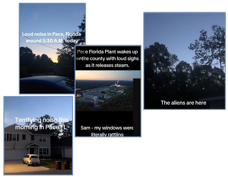Стонущее небо, которого мы ожидаем, ещё не наступило, по крайней мере, в полную силу, но уже начинают раздаваться загадочные звуки. Например, звук, который недавно разбудил жителей Пейса, штат Флорида. Утверждается, что это звук выброса на электростанции, но он не похож на звук пара, который издаёт визг или рёв и который является постоянным, а не прерывистым. В Пейсе, штат Флорида, пока неясно, что происходит, но скоро начнётся Небесный пожар!
