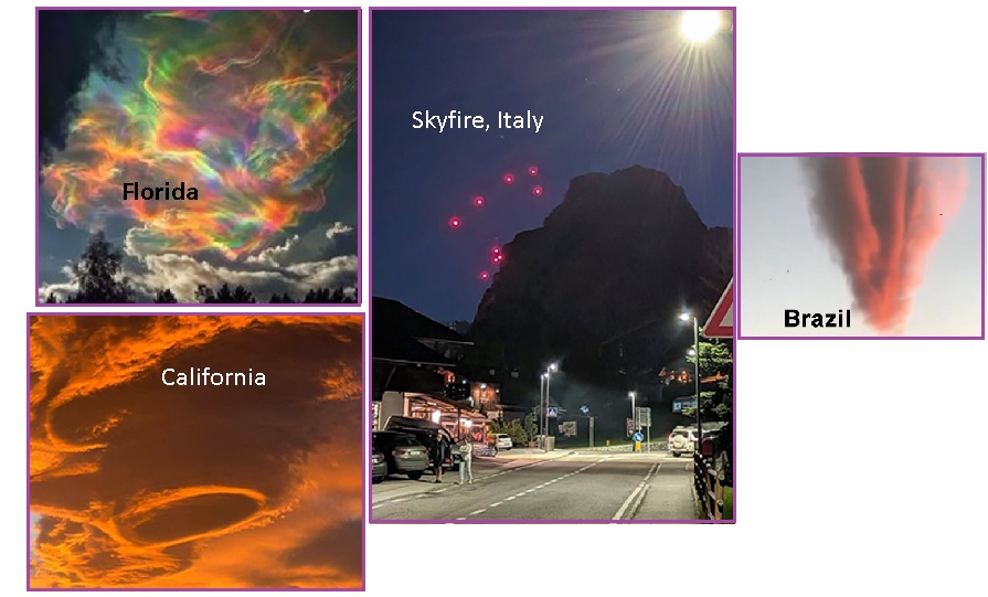 По мере того как огромный хвост Нибиру приближается к несчастной Земле, нефтяная драма становится всё более частой и масштабной. Группа ZetaTalk Followers почти ежедневно публикует примеры, такие как оранжевые облака из красной пыли, радужные разводы в облаках, покрытые маслянистой субстанцией, и падающие горящие нефтяные шары.