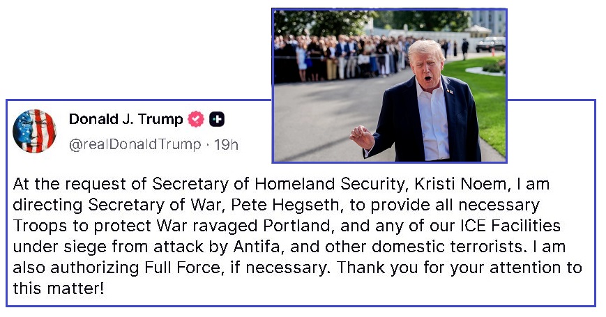 - Трамп отдаёт приказ о переброске войск в Портленд и санкционирует применение «полной силы».