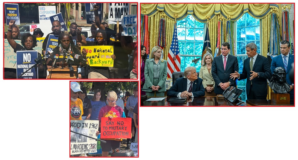 - Губернатор Теннесси Билл Ли объявил, что на следующей неделе в Мемфис прибудут войска Национальной гвардии. «История преступности в Мемфисе скоро останется в прошлом», — заявил Ли на пресс-конференции в пятницу, 26 сентября. Ли сказал, что ведомства начнут прибывать в понедельник. Ли сказал, что развёртывание будет осуществляться «поэтапно» в течение следующих нескольких недель и месяцев. Губернатор сообщил, что в операции будут задействованы 13 ведомств, в том числе ФБР, Управление по борьбе с наркотиками и Бюро по контролю за оборотом алкоголя, табака, огнестрельного оружия и взрывчатых веществ. Он сказал, что операция будет «зависеть от поставленной задачи», а количество военнослужащих будет определяться потребностями. Губернатор сообщил, что в начале операции военнослужащие не будут вооружены и не будут производить аресты, но это может измениться в зависимости от потребностей.