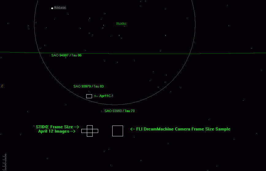 None of the large Taurus stars were captured in April 11 and 12. Not T83, T86, T90, nor T79.