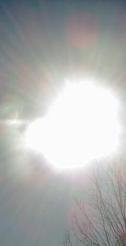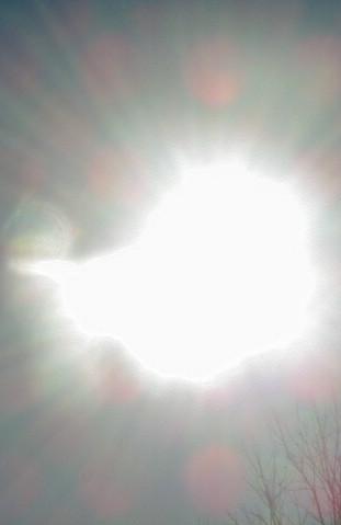 Here are some photos taken Dec 17 at 1:30 PM. The image of Planet X is now moving off more to the left of the Sun from my viewing point here in Louisiana. The photos are showing an extremely occulted Sun off to the lower left of image, with the winged globe effect, as the movement of Planet X is positioned in the constellation Libra now. Also of note is the white images surrounding the Sun, similar to the Signs of the Times #548 description by an observer in Michigan. What it may infer is the coming together of the corpus complex of Planet X and Moons.