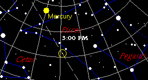Note the orb moves along the Ecliptic as the afternoon progresses. First at 5:30 o’clock and then at 6:30’o’clock position to the Sun.