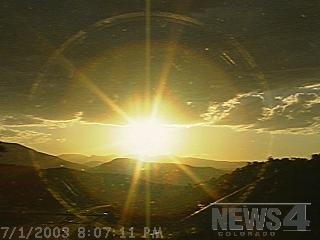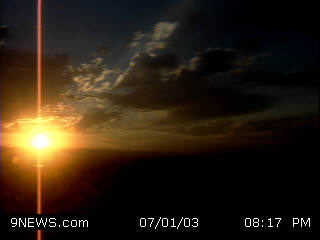 A Colorado Blvd. vertical line sunset, and a Denver Mountain cam.
