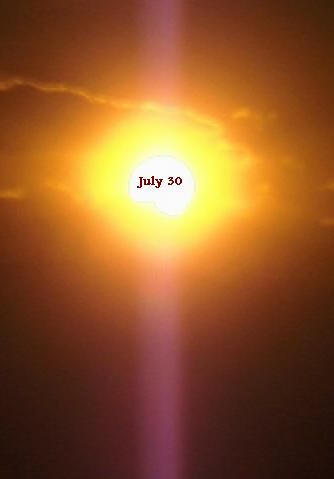 This same location in Italy affords an apples to apples comparison on the size and occulting position of Planet X on July 17 and July 25. Note how rapidly the occulting Planet X complex came within the body of the Sun as viewed from Earth. Note also the size of the vertical flare on July 17 which increased dramatically by July 25, remained that size on July 30 but got hot and red.