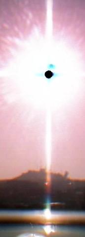 - Planet X is currently between the Earth and Sun, and thus moves independently from the Sun. As the Sun progresses through the early morning, you can see the Sun move toward the right in the photos more rapidly than the Fire Dragon. An additional persona makes a brief appearance at 12 o'clock, with its red dust cloud. The last photos is not filtered, showing the Occulted Sun that would normally greet the eye.